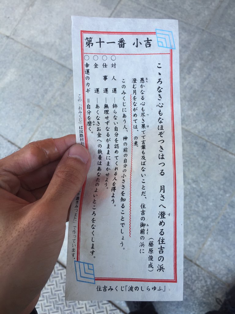 宮城 拓也 On Twitter 年が明けて2週間経って ようやく 住吉大社に初詣行けた おみくじは3番目に良い小吉を引いた ビジネス文書検定3級合格できたし 今日は良いこと尽くしな日 O Https T Co O1nmmvnjkr