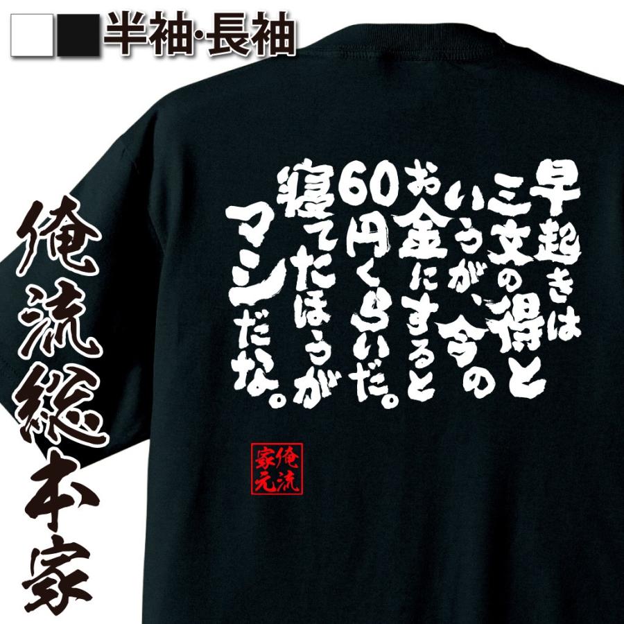おもしろtシャツ メンズ キッズ パロディ 俺流総本家 魂心 早起きは三文の得というが 今のお金にすると60円くらいだ 寝てたほうがマシだな 漢字 4573185169788 おもしろtシャツのthe Fool 通販 Yahoo ショッピング