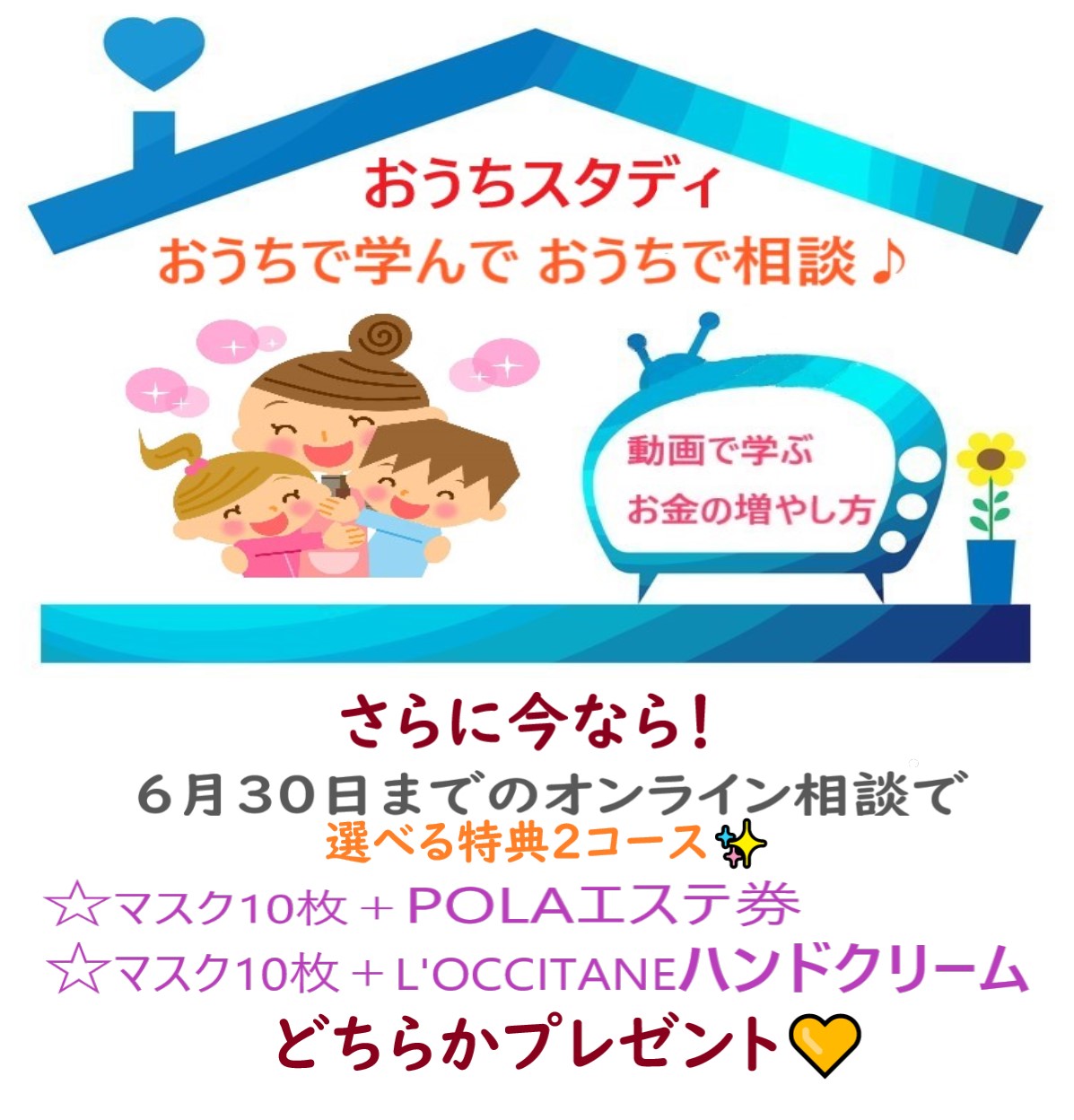 おうち時間をフル活用 オンラインでマネー相談キャンペーン マスク10枚 Polaのエステ券またはハンドクリームをプレゼント マネーセミナー動画付き