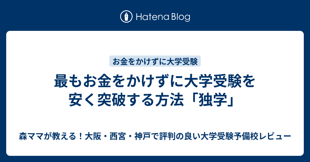 最もお金をかけずに大学受験を安く突破する方法 独学 森ママが教える 大阪 西宮 神戸で評判の良い大学受験予備校レビュー