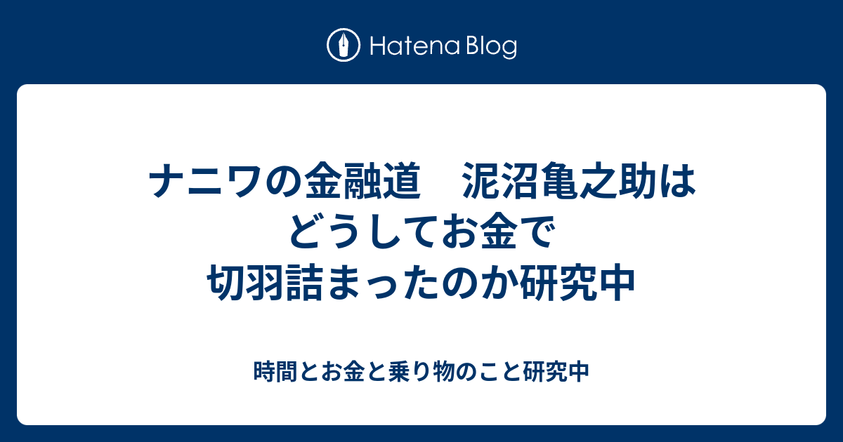 ナニワの金融道 泥沼亀之助はどうしてお金で切羽詰まったのか研究中 時間とお金と乗り物のこと研究中