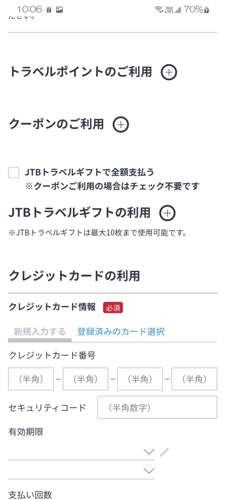 Jtbのサイトでgotoトラベルでjr 宿泊をとりたいんですが クレジット Yahoo 知恵袋