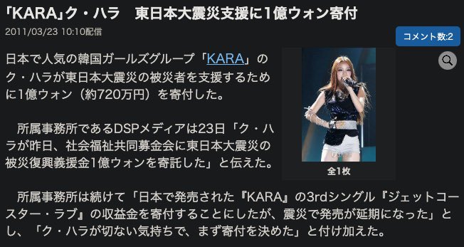 Kara出身ハラ 東日本大震災で1億ウォン 約1千万円 を寄付してくれていたことが話題に 韓information