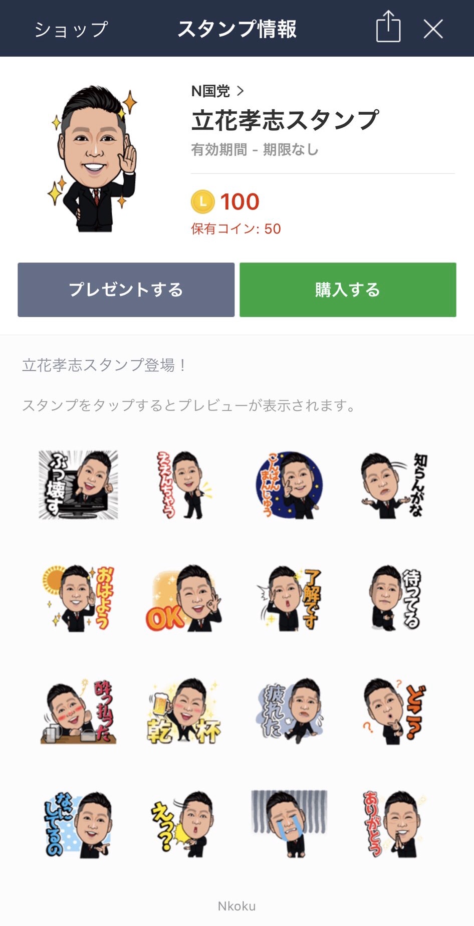 Nhkから国民を守る党 立花孝志のスタンプが作られてしまう ニコニコニュース
