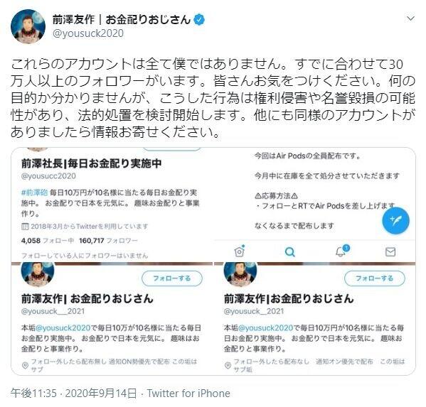 偽前澤軍団 勢力拡大に本人警鐘 合わせて30万人以上のフォロワーが ニコニコニュース
